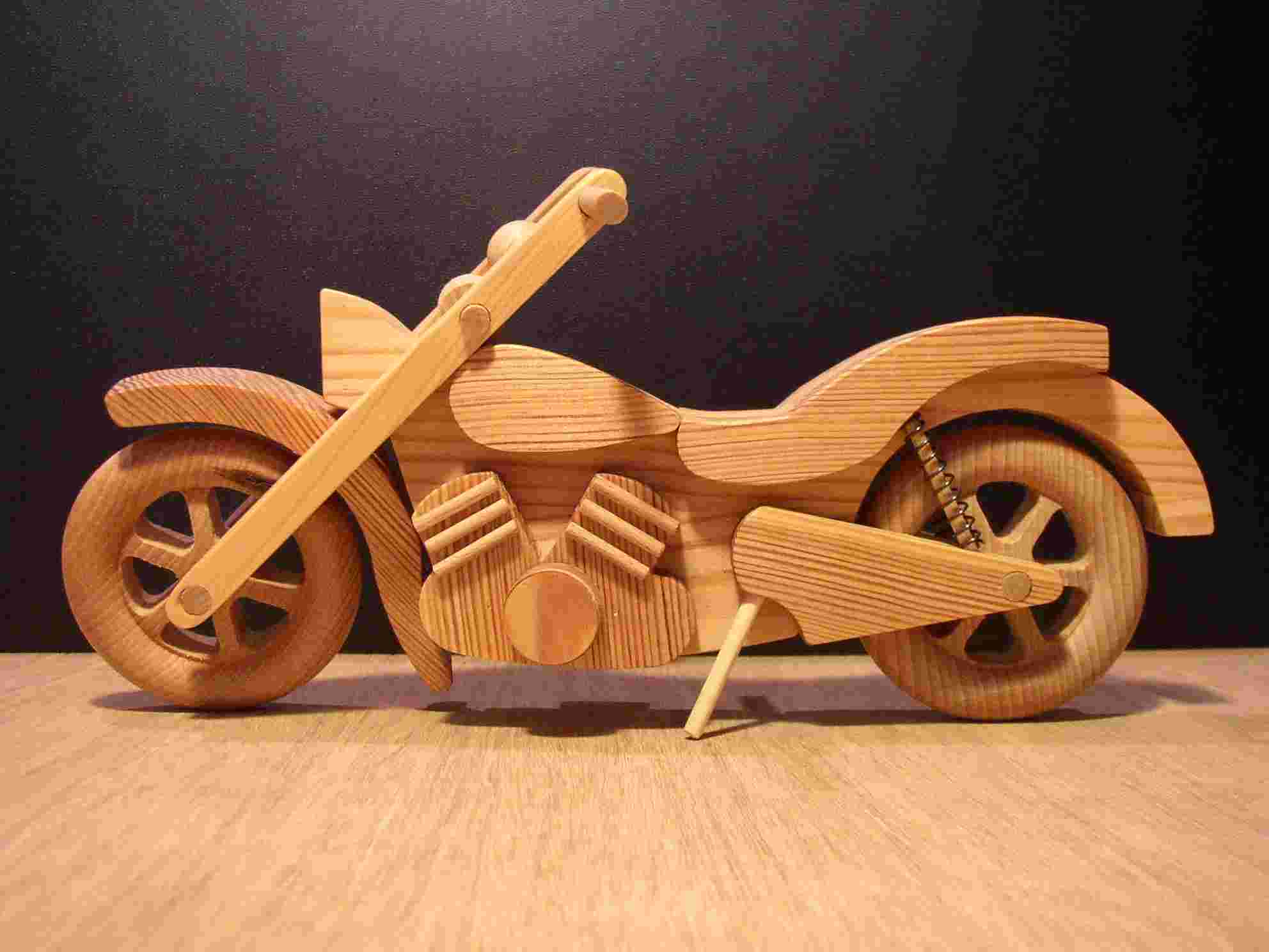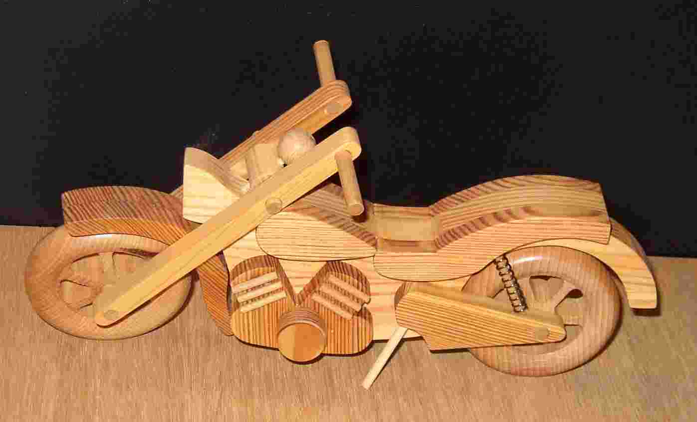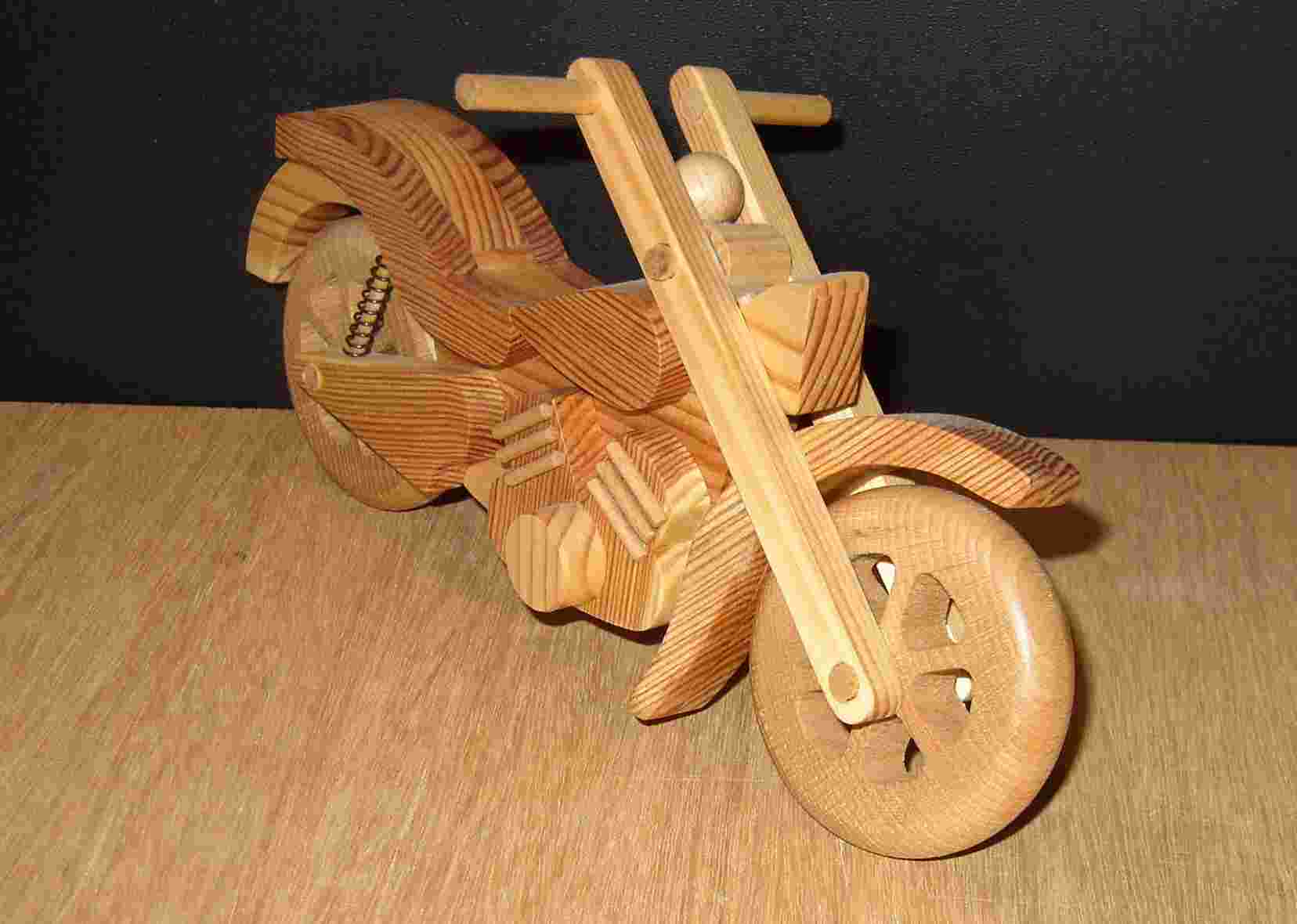 Motorradminiatur aus Kiefer und Buche
