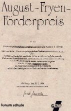 der Veranstaltung „Forum Schule“ den August-Fryen-Förderpreis. Der