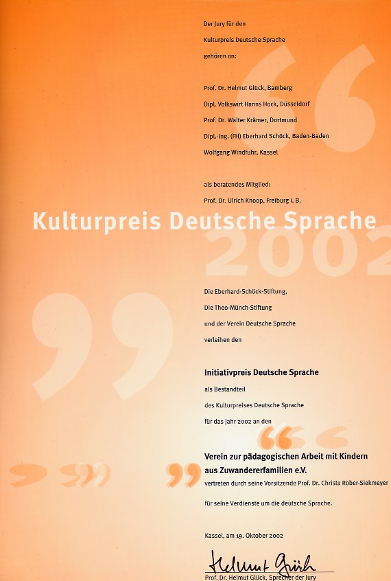 der „Initiativpreis deutsche Sprache“ verliehen. Der mit 10.000